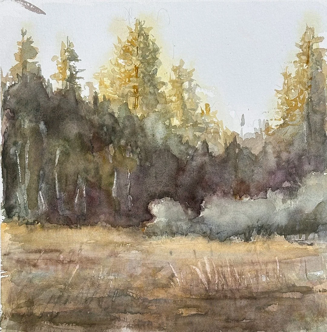 It’s been a long time since I’ve disconnected. At first I felt isolated, lonely for the constant dopamine hit of frantic news and messages. But it didn’t take long for my mind to unwind. I slept deeply, and woke early to paint the morning light as it spilled across the meadow.